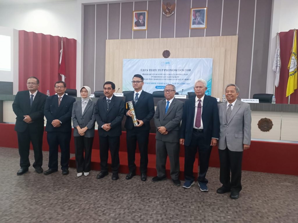 Ujian tertutup di laksanakan pada tanggal 13 April 2026 yang di selenggarakan secara luring di ruang sidang lt. 6 Sekolah Pascasarjana UNS. Ujian tertutup di pimpin oleh Dekan Sekolah Pascasarjana UNS Prof. Dr.rer.nat. Sajidan, M.Si dengan Promotor Prof. Dr. Widodo Muktiyo, S.E., M.Com Ko-Promotor I : Prof. Dr. Drajat Tri Kartono,M.Si dan Ko-Promotor II : Dr. Ir. Dwiningtyas Padmaningrum, S.P.,M.Si.